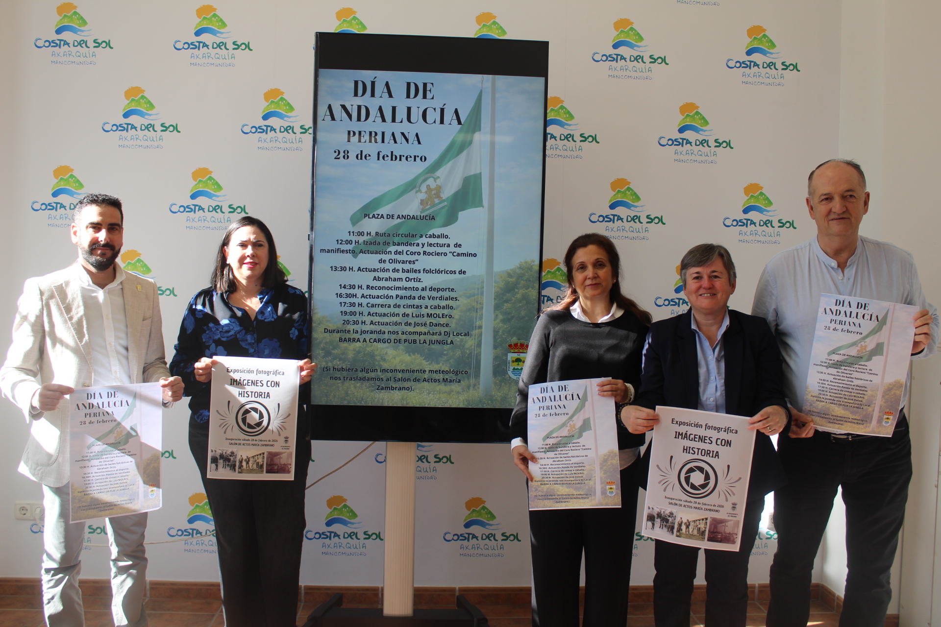 El presidente de la Mancomunidad de Municipios de la Costa del Sol Axarquía, Jorge Martín; la alcaldesa de Periana, Meritxel Vizuelte; el teniente alcalde de Periana, Javier Segarra; la concejala …