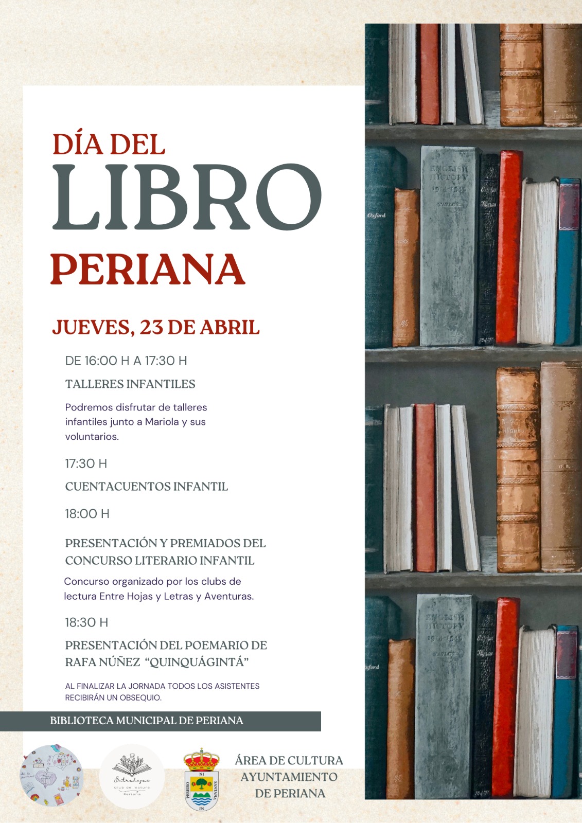 Talleres infantiles, cuentacuentos y un concurso literario forman parte de la programación que se desarrollará a lo largo de la tarde. El escritor Rafa Núñez presentará el poemario ‘Quinquágintá’