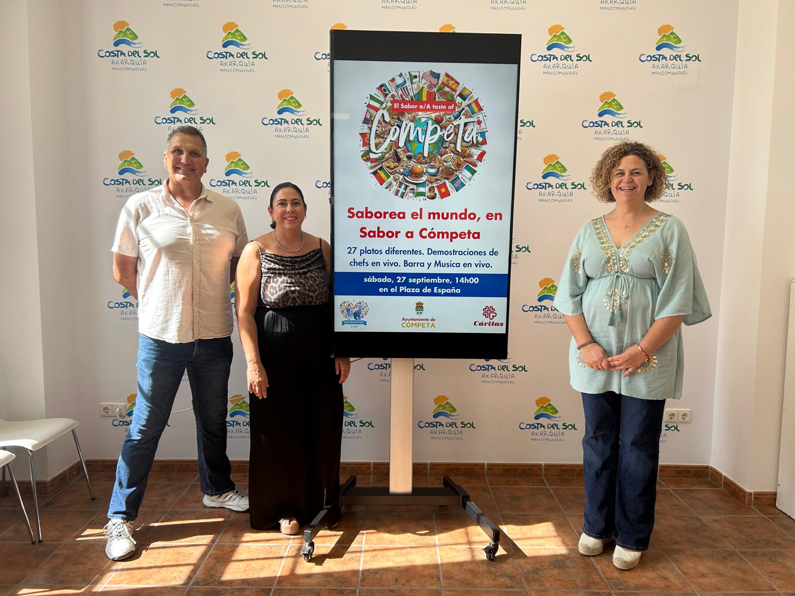 La vicepresidenta de la Mancomunidad de Municipios de la Costa del Sol Axarquía, Marilé Muñiz; la concejal de Turismo y Cultura, Mónica Ruiz y el edil de Residentes, Marius Lawrence Jonker han dado a conocer el programa de actos que han preparado con motivo de la tercera edición del evento gastronómico ‘Sabor a Cómpeta’ que tendrá lugar este sábado 27 de septiembre a partir de las 14:00 horas en la plaza de España.